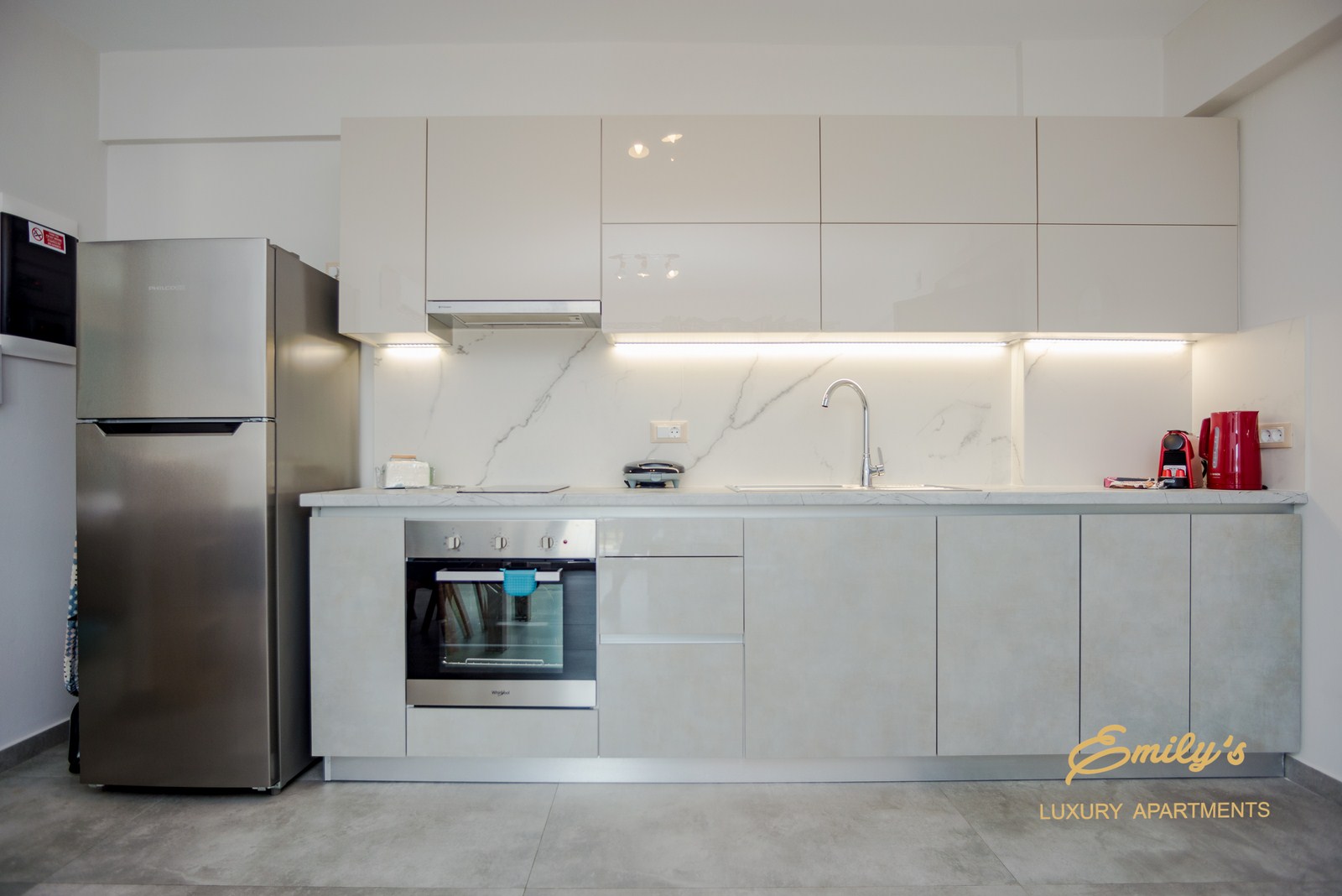 Το Α4 διαμέρισμα 52τ.μ και περιλαμβάνει 1 υπνοδωμάτιο, μπάνιο, σαλόνι, κουζίνα, κουζινικά σκεύη, εστίες μαγειρέματος, καφετιέρα για γαλλικό και άλλους καφέδες, ψυγείο, και πλυντήριο ρούχων.