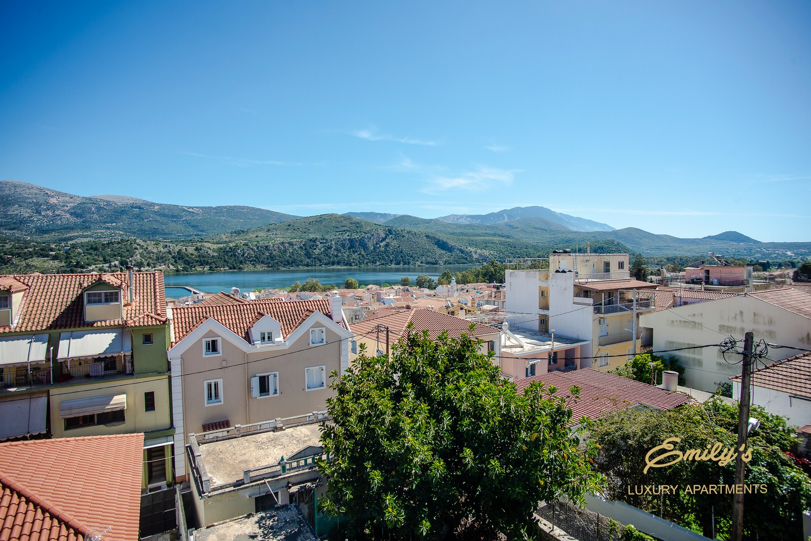 Η μία πλευρά του διαμερίσματος έχει πανοραμική θέα στην πόλη και στον κόλπο του Αργοστολίου, ενώ η άλλη έχει θεά σε πάρκο.