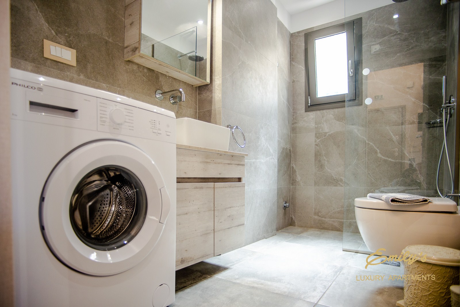 Το διαμέρισμα Α5 είναι 92 τ.μ και διαθέτει 2 υπνοδωμάτια, μπάνιο, σαλόνι, κουζίνα, κουζινικά σκεύη, εστίες μαγειρέματος, πλυντήριο πιάτων, καφετιέρα για γαλλικό και άλλους καφέδες, ψυγείο, και πλυντήριο ρούχων.